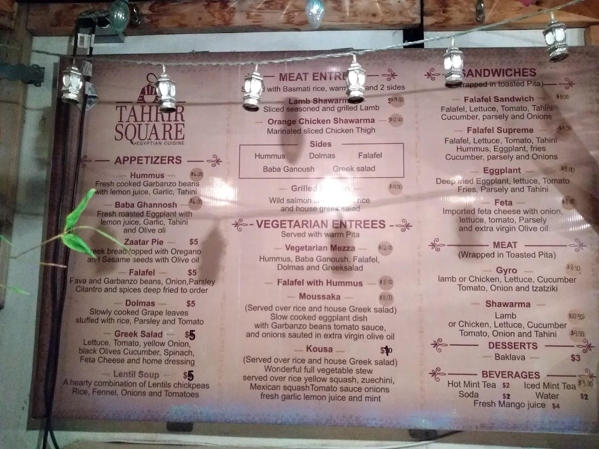 Driven by a passion for food, Tahrir Square is renowned not just for its dishes but also for the friendly service and inviting atmosphere. Whether you're looking to enjoy a meal on-site or through delivery, you're sure to find a new favorite here.
